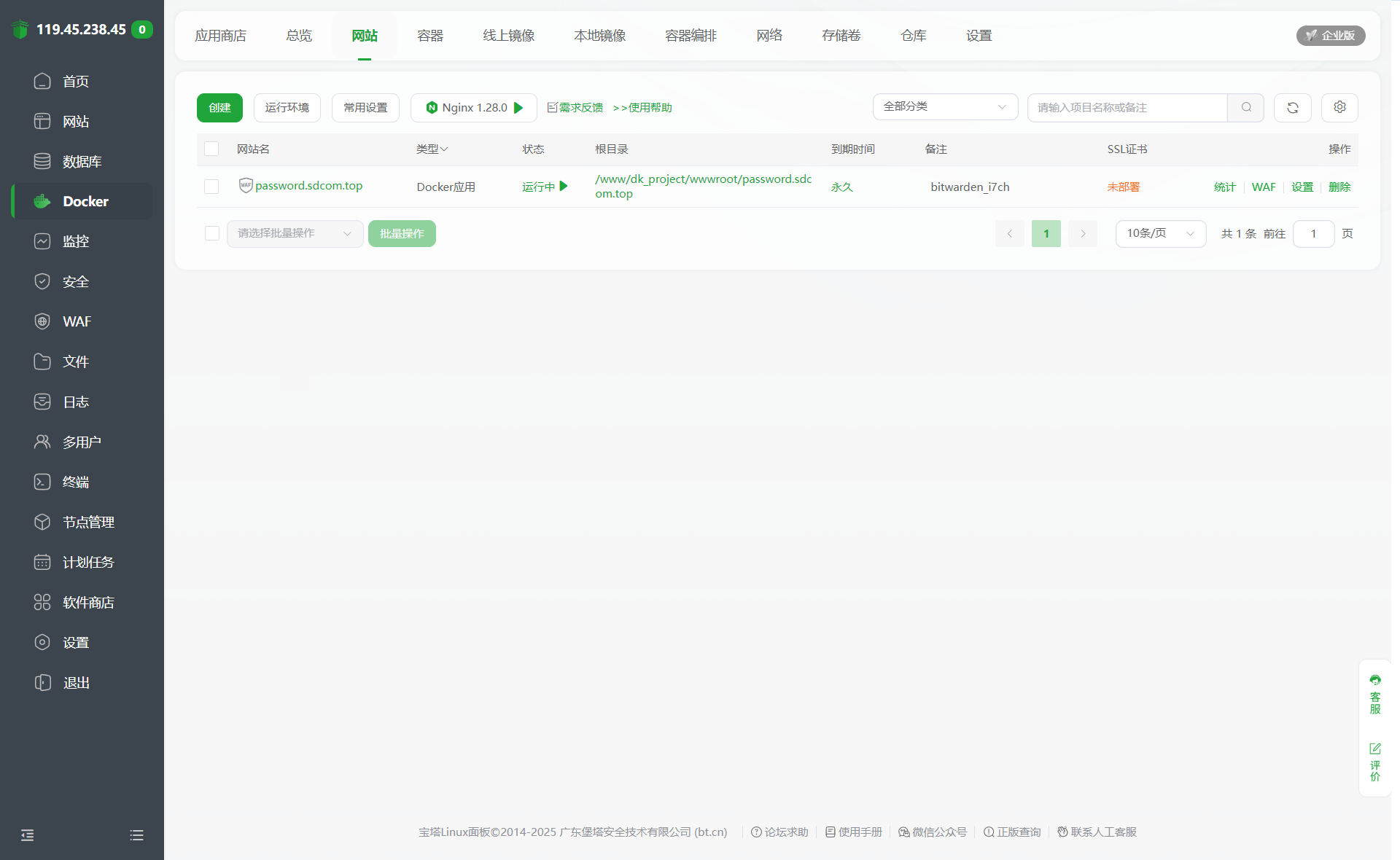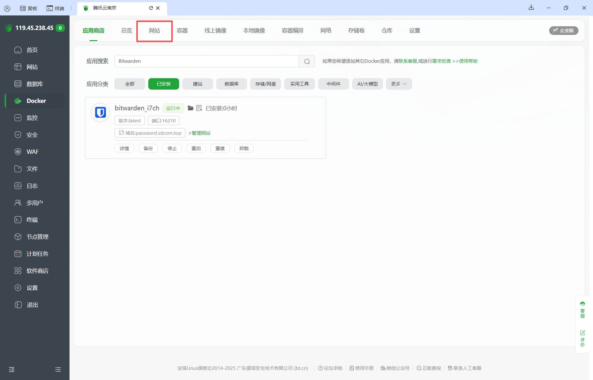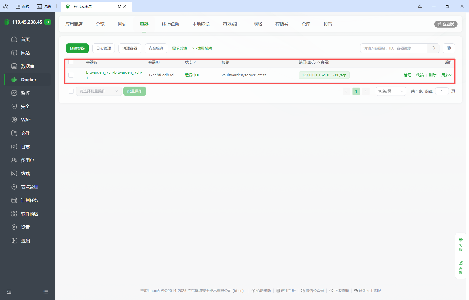 那么我们应该怎么去快速方便的部署这么好用的密码管理工具呢?这里我们可以使用宝塔面板快速的进行部署