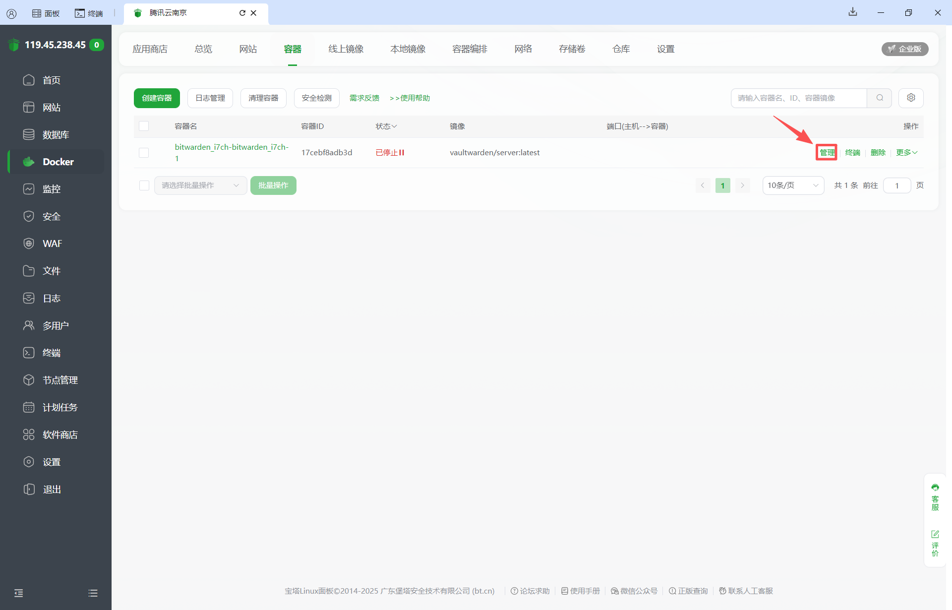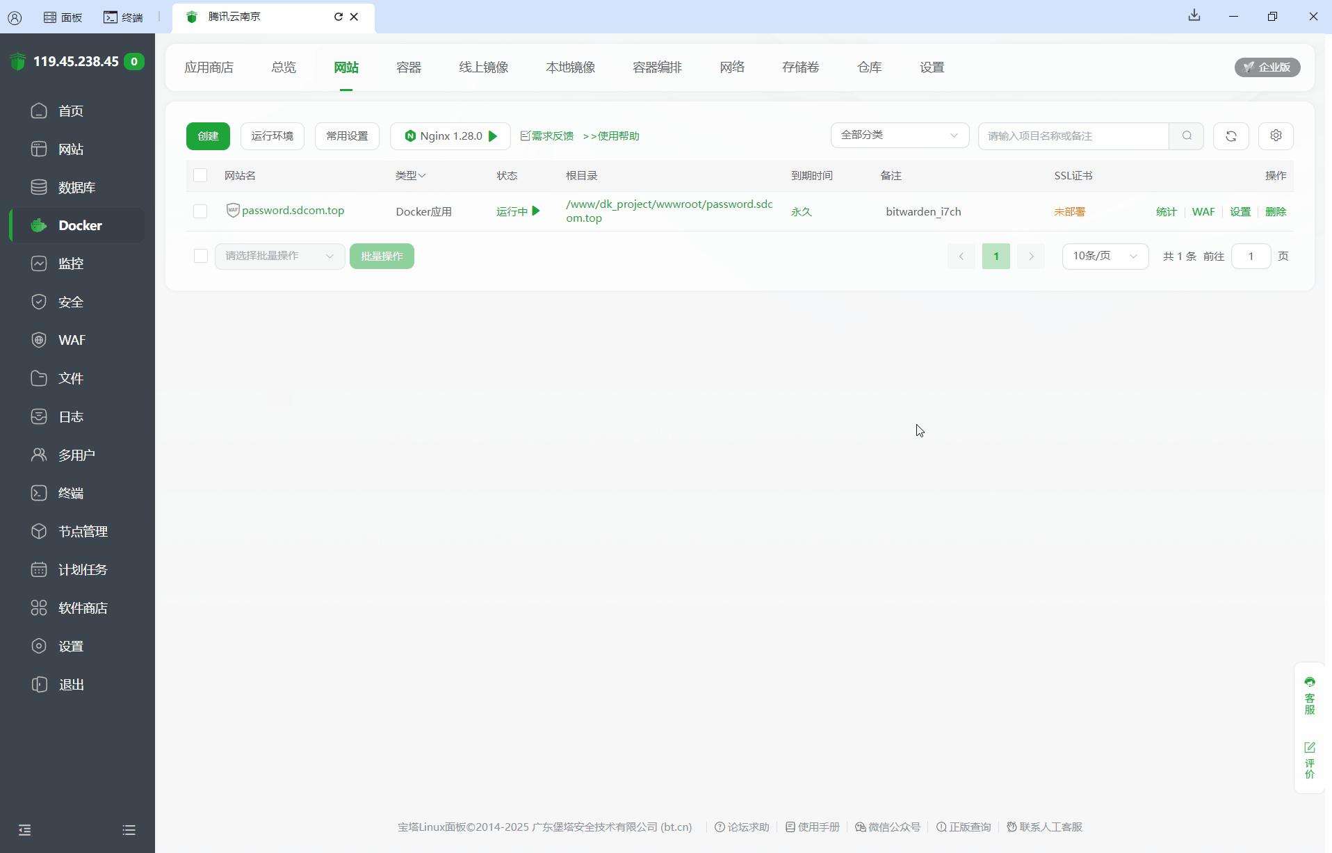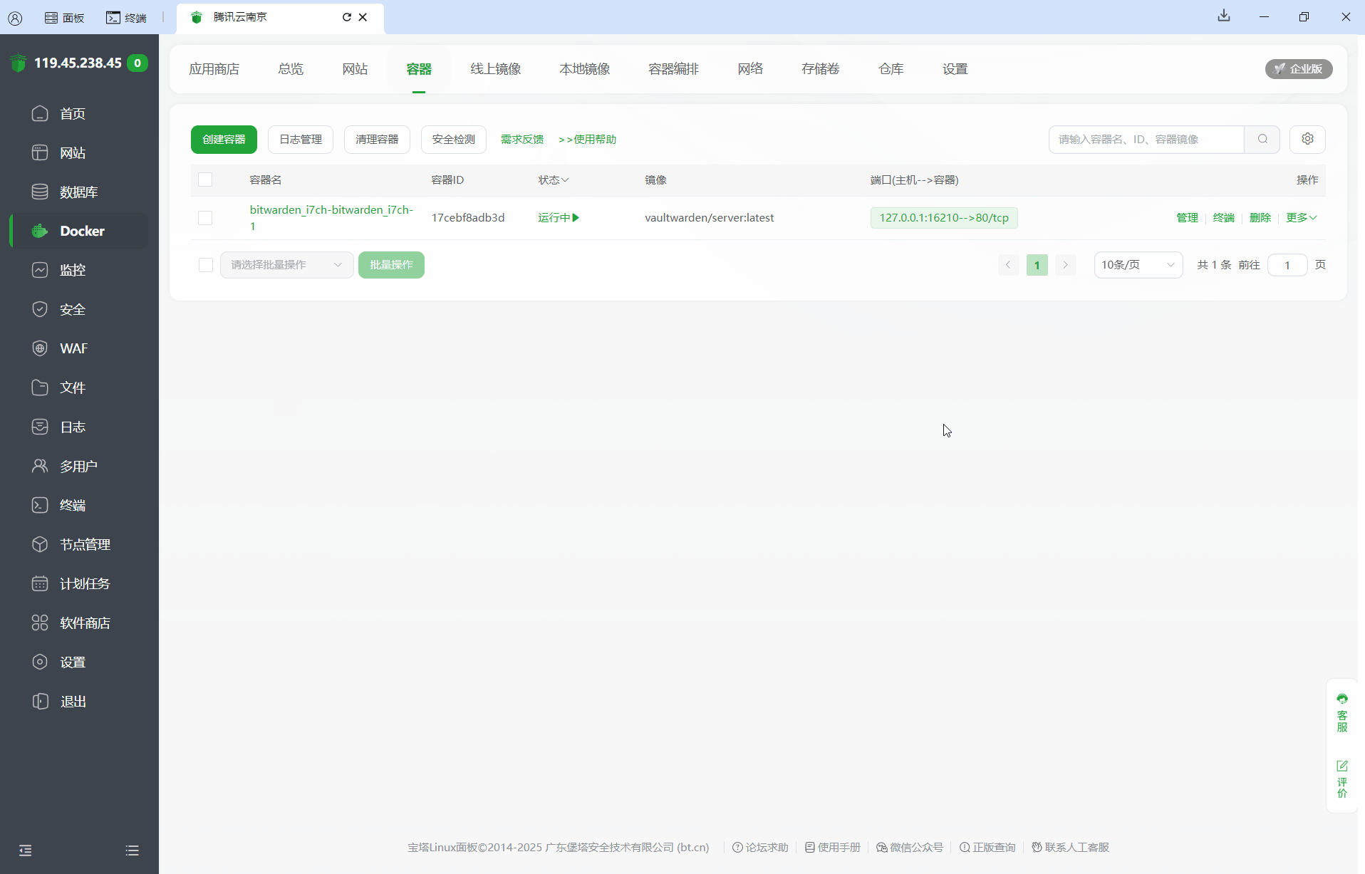 那么我们应该怎么去快速方便的部署这么好用的密码管理工具呢?这里我们可以使用宝塔面板快速的进行部署